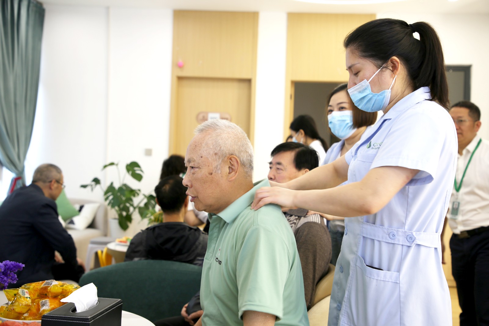 老同志们分为6组先后参观体验了春江酒城嘉苑养老社区,医疗投资公司“一院四中心”——专科护理医院、健康体检中心、康复理疗中心、运动健康中心、情绪睡眠中心。老同志们在专业人员的陪同下了解了日常预防保健知识,体验了血压、血糖监测、专家一对一咨询指导、康复理疗项目以及中西医专家一对一健康咨询、中药辨识、用药指导等。在春江酒城嘉苑观看了宣传片,参观了养老公寓样板间、食堂、会员服务中心、营销中心、活动中心、离退休党支部活动室、书画室、农工党同心健康服务基地等,品尝了天植中药公司的中草药茶品,体验充满趣味的手工活动,亲身感受了春江酒城嘉苑长者们享受的趣味生活。