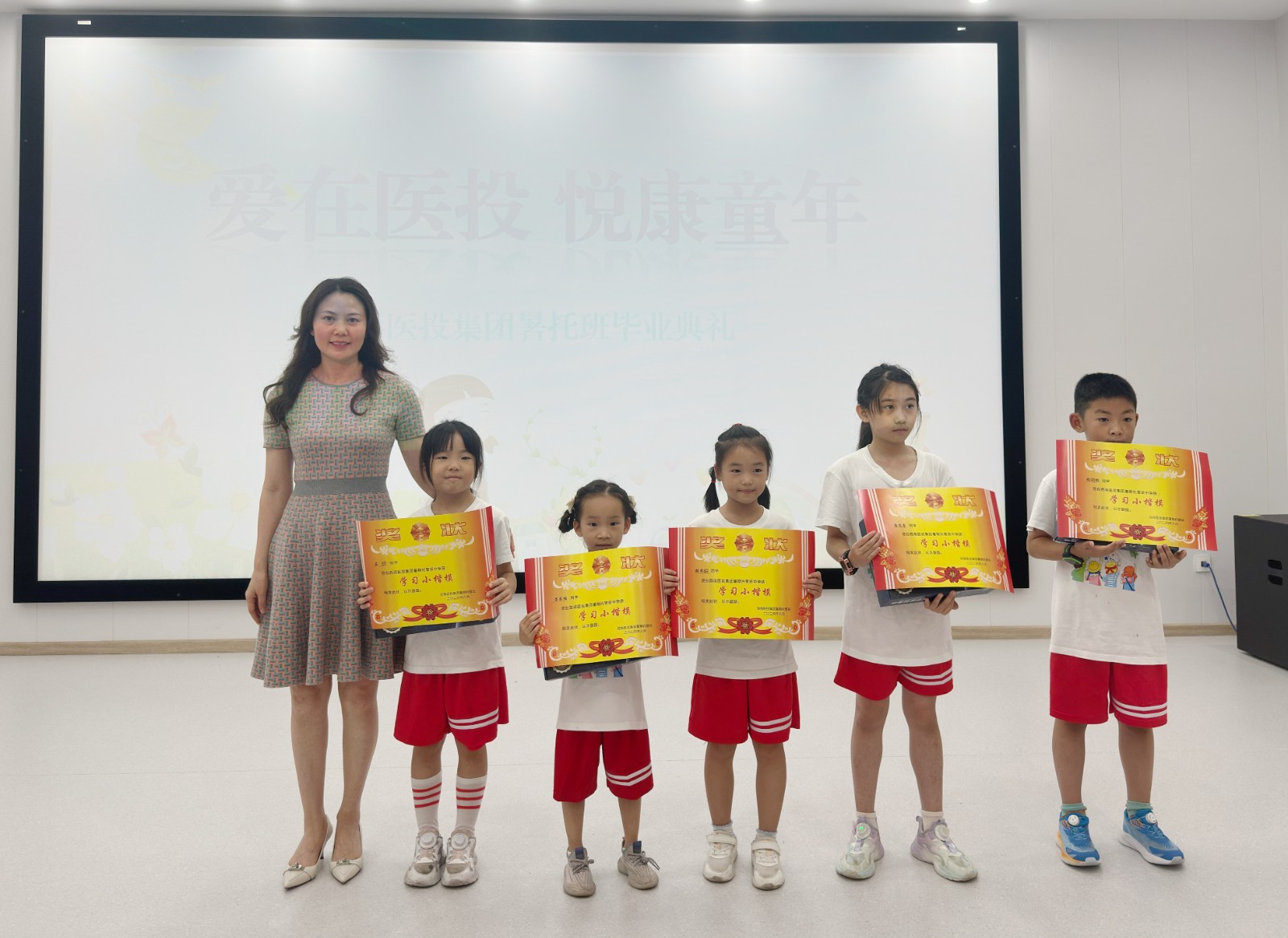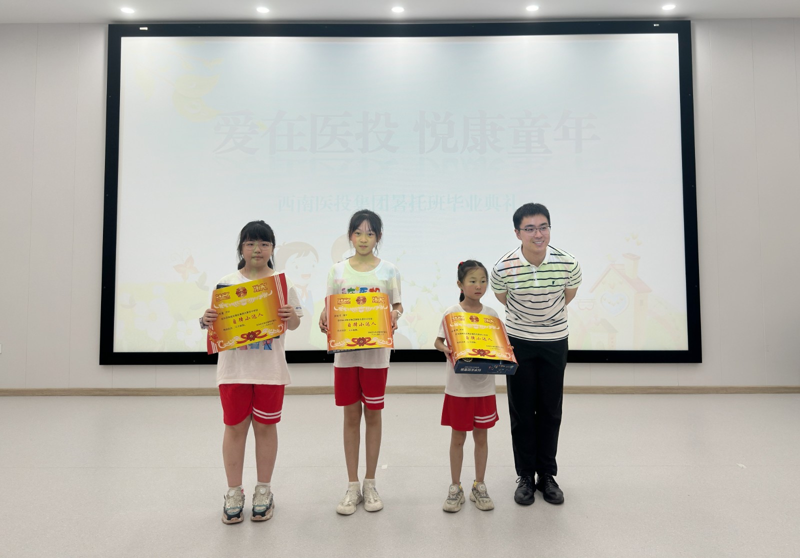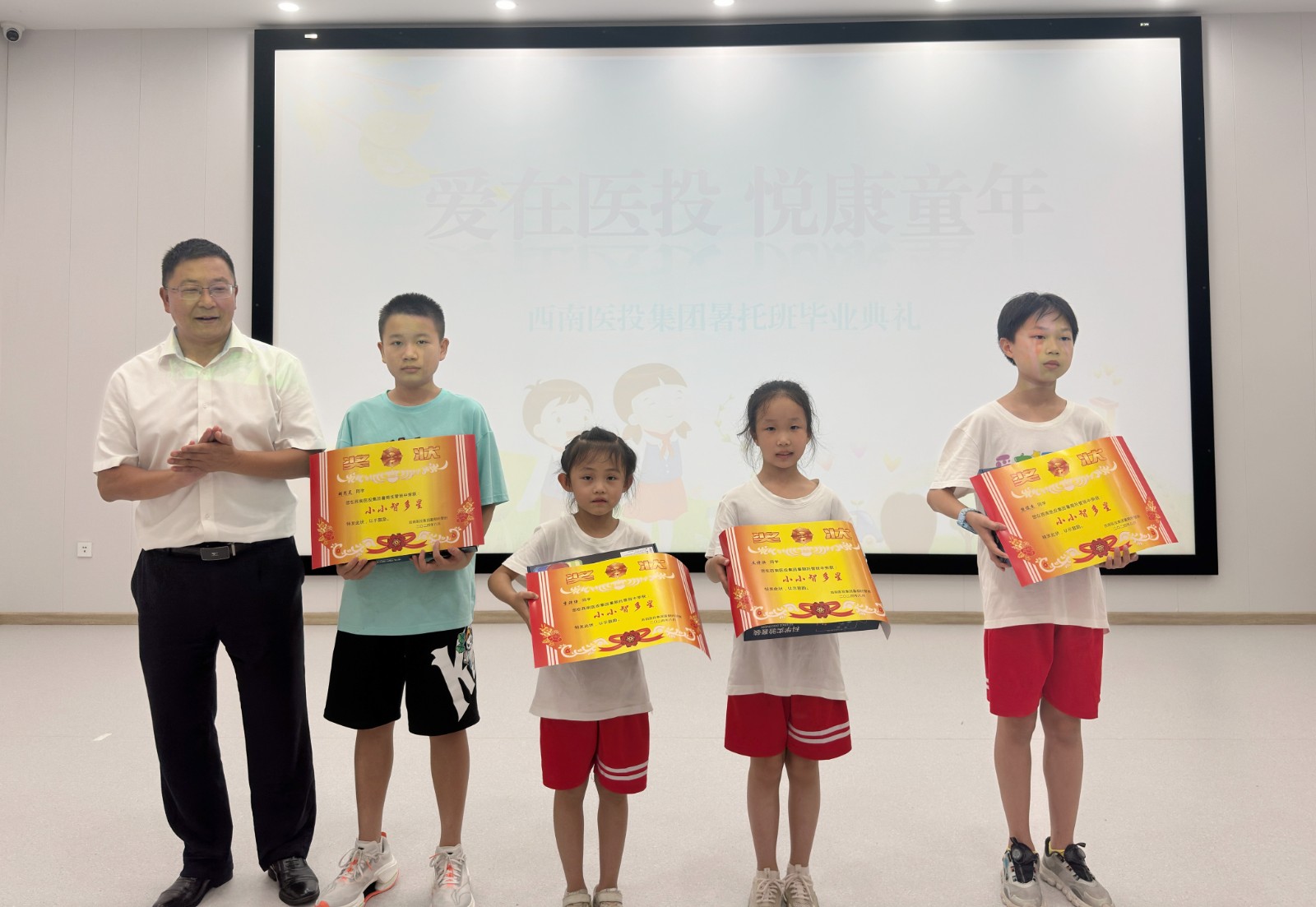 8月2日上午,西南医投集团“爱在医投 悦康童年”第一期暑期托管班毕业典礼在春江酒城嘉苑营销大厅举行。